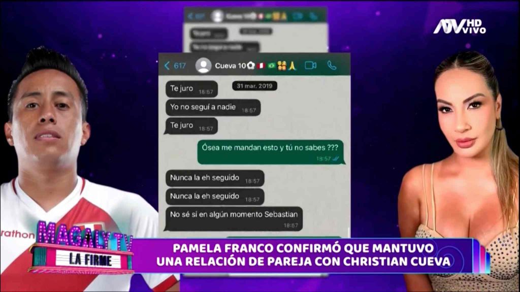 La aún esposa del exjugador de Alianza Lima, le reclamó en 2018 a Christian Cueva el haberle dado ‘likes’ a unas fotografías de Pamela Franco, con quien se le vinculaba sentimentalmente. No obstante, este negó tener algún vinculo con la cumbiambera.