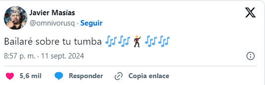 El reconocido crítico gastronómico y figura mediática, Javier Masías, ha vuelto a estar en el ojo de la tormenta tras realizar un comentario que ha causado gran revuelo en redes sociales. Tras difundirse rumores sobre el estado de salud del expresidente Alberto Fujimori, Masías compartió una publicación que no dejó a nadie indiferente: «Bailaré sobre tu tumba», escribió en sus redes, provocando una oleada de reacciones.