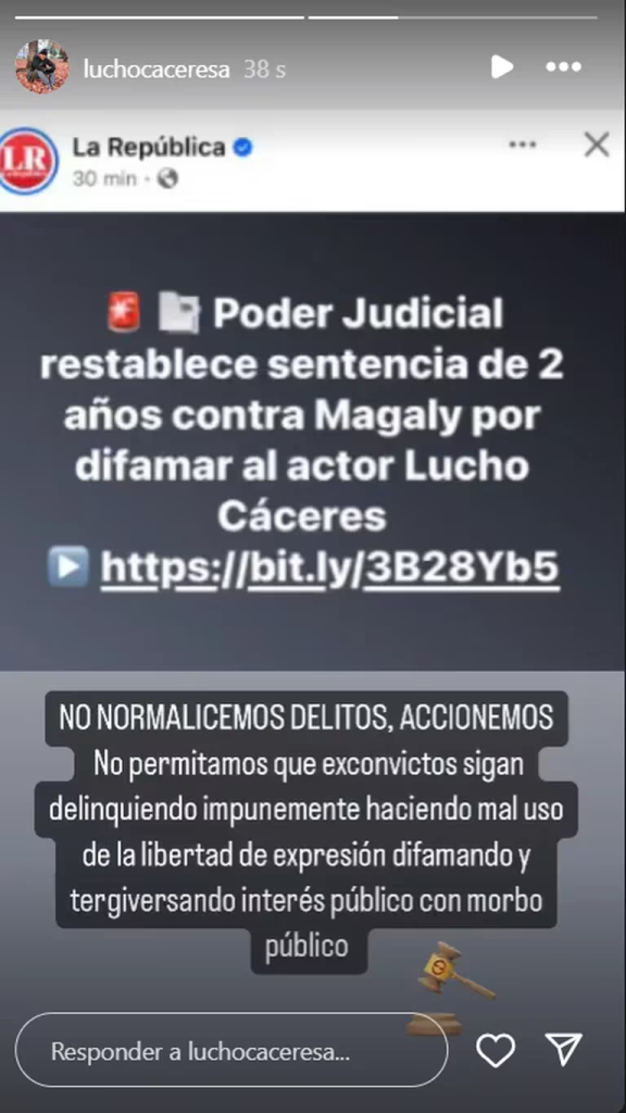 Lucho Cáceres, tras conocerse la noticia, se pronunció a través de su cuenta de Instagram, compartiendo el fallo judicial que favorece su demanda interpuesta en 2020. Por su parte, Magaly Medina expresó su desacuerdo, afirmando que su equipo legal no pudo presentar pruebas claves para su defensa, lo que considera una falta de legítima defensa.