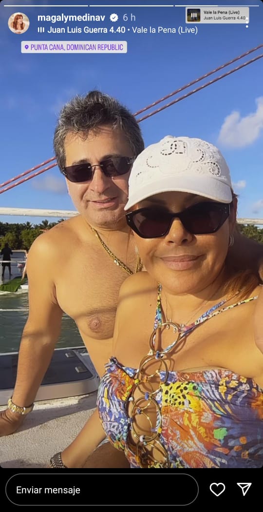 Tras varias horas, se pudo conocer el lugar que la conductora de televisión escogió para pasar el fin de semana largo, y este es Punta Cana, en República Dominicana. En las historias que subió Magaly Medina junto a su esposo, se les observa a ambos sonrientes con trajes de baño, listos para tomar el sol o nadar en las paradisiacas playas.